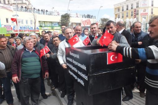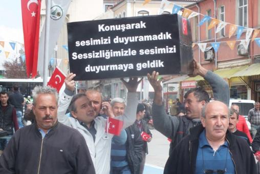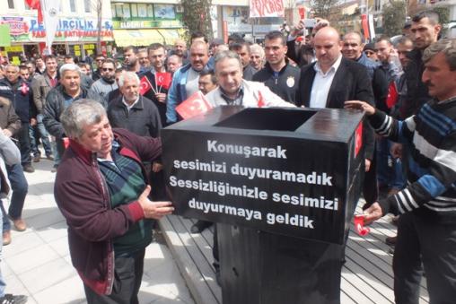 Sanayinin taşınması oluşumuna tepki gösteren esnaflar BESOB ve Ticaret Sanayi Odası’nın ardından Hisar Tepesi’nden Belediye Meydanı’na kadar sessiz bir şekilde yürüdü. Yürüyüşün öncesinde Emniyet ve Bolu Belediyesi Zabıta ekipleri tarafından barikatlar kuruldu. Bolu Belediye Meydanı’na gelen esnaflar “Konuşarak sesimizi duyuramadık, sessizliğimizle sesimizi duyurmaya geldik” diyerek tepkilerini dile getirdi. Alkışlar ve Türk bayrakları ile tepkilerini ortaya koyan esnaf anahtarlarını da oluşturulan kutuya attı. MHP Milletvekili Şükrü Gülez’i aralarında gören esnaflar, “Bizim siyasetle işimiz yok” dediler. Sanayi esnafı tarafından dağıtılan basın bildirisinde tepkilerin odak noktasındaki kişi Bolu Belediye Başkanı Alaaddin Yılmaz oldu.