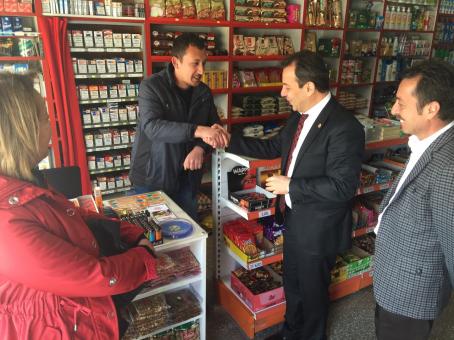 Özcan, diğer ilçelerde olduğu gibi Seben’de, kamu kurum ve kuruluşlarıyla başladığı ziyaretlerini esnaf gezileriyle sürdürdü.