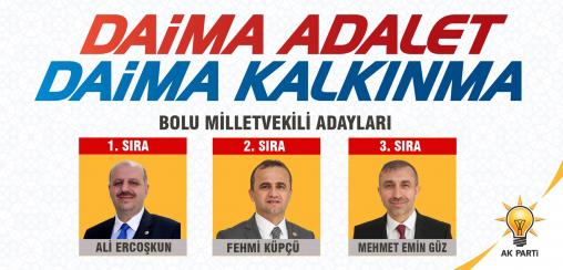 İl Tanıtım ve Medya Başkanlığı, yaptığı yazılı açıklama ile, Milletvekili Adayları Ali Ercoşkun, Fehmi Küpçü ve Mehmet Emin Güz'ün AK Parti Genel Merkezi tarafından Ankara Arena'da düzenlenen tanıtım programının ardından ikinci kez halkın ve partililerin karşısına çıkacağı programın, 19 Nisan 2015 Pazar günü saat 13.30'da Bolu İl Kültür ve Turizm Müdürlüğü salonunda gerçekleşeceğini açıkladı.