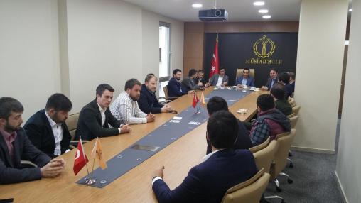 Ziyaret programı ilk olarak Müsiad Bolu şubesinde tanışma ve kaynaşma toplantısı ile başladı. Bu toplantıda Genç Müsiad Genel Başkanı Yavuz Fettahoğlu; “Hepinize bu sıcak karşılama için çok teşekkür ederim. Bolu Müsiad’ın çalışmaları başarıları kulağımıza geldi. İnşallah Bolu Genç Müsiad’dan da aynı çalışma ve başarıyı göstermelerini bekliyoruz.” ifadelerini kullandı.
