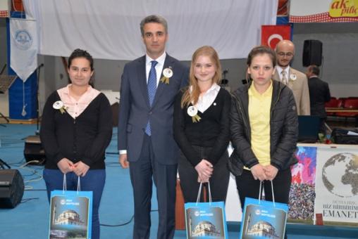 Daha sonra ise Kutlu Doğum Haftası kapsamında ilimiz genelindeki ortaokul ve lise öğrencileri arasında yapılan şiir yarışmalarında dereceye girenlere ödülleri Bolu Valisi Aydın Baruş ve Belediye Başkan Yardımcısı İhsan Ağcan tarafından verildi.