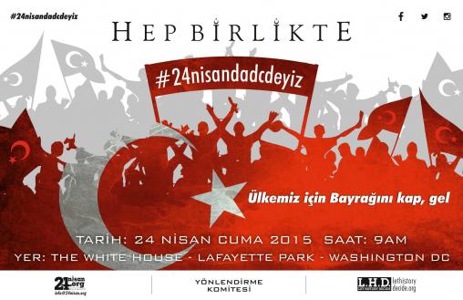 Yapılan açıklama şöyle: “Ermenilerin 1915’te Osmanlı Devleti tarafından soykırıma uğradığı iddialarıyla yurt dışında yaşayan Ermenileri ortak propagandayla bir çatı altında toplayan Ermeni Diasporası Sözde soykırımı tanıtma çabaları ve asılsız suclamalarıyla Türkiye’nin dış politikasını sürekli baskı altında tutmakta ve Türkiye’ye yönelik psikolojik operasyonlar yapılması için değişik ülkelerin eline büyük fırsatlar vermektedir. Sözde Ermeni soykırımı kabul edilirse ikinci aşamada tazminat, üçüncü aşamada toprak talebi olacaktır. Bunun akabinde ABD’de tarih kitaplarinda Türklerin soykırım yaptığına dair yalanlar kendi çocuklarımıza ve herkese ezberletilecektir. 1915 olaylarının 100. Yildönümü olan 24 Nisan 2015 e çok az zaman kala Ermeniler Türkiye aleyhinde çok kapsamlı mitinglere hazırlanıp, bütün gücüyle Türkiyeyi protesto etmeyi planlamaktadırlar.Tüm Türk Diasporasının birlikte hareket edeceği 24 Nisan 2015 Mitingimizde diğer yıllara nazaran müthiş bir katılım beklenmektedir. Sözde ermeni soykırımı iddialarının 100.yıl dönümünde sesimizin hep beraber daha çok çıkması için hepimiz Washington DC’de olmalıyız. -Kamu Diplomasisinin etkilerini ülkemiz lehine çevirmek için, -Sozde Ermeni soykırımı yalanlarını bertaraf etmek için, -Asılsız soykırım iddialarına sessiz kalip akabinde tazminat ve toprak kaybı yaşamamak için, -Asılsız soykırım iddialarının senatodan geçmesine engel olup ülkemiz dış politikasına müspet fayda sağlamak için -EN ÖNEMLİSİ Tarihin Parlementolarda yazılamayacağını haykırmak için 24 Nisan Cuma günü Washington Büyükelciliği önünde buluşalım. Kimseden davet bekleme ve bayrağını al gel. Ben olmasam da olur deme, Senin de orda olman ülkemiz adina çok önemlidir. Bolu Ekspres Gazetesi’ni temsilen köşe yazarımız Tahir Semih Özçelik’in katılacağı 24 Nisan 2015 Cuma günü Amerika’da bulunan tüm hemşehrilerimizi Washington DC’deki Barış ve Dayanışma Yürüyüşü’ne bekliyoruz. Ayrıntılı bilgi icin: www.24nisan.org.”