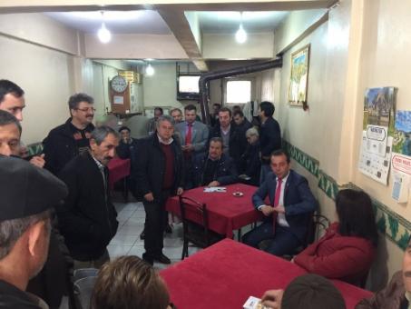 Özcan ve beraberindekiler, seçim çalışmalarına ilçede yaptıkları ziyaretlerle devam etti.