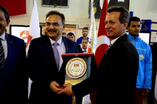 Konuşmaların ardından Rektör Coşkun ve Salim Kayıcı’ya, Türkiye Üniversite Sporları Federasyonu’nun teşekkür plaketi takdim edildi.