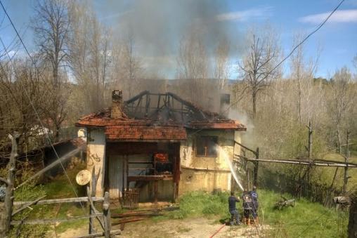 Bacadan çıktığı belirlenen yangına Göynük ve Taraklı itfaiye ekiplerinin müdahale etmesine rağmen ahşap ev tamamen yandı.