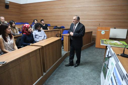 Geleceğin mimarları ile birlikte bu projenin hayata geçirilmesinde öncü olan Bolu Belediye Meclis Üyesi Hakan Özmen ise; “Bize zaman ayırdığınız için öncelikle size çok teşekkür ederiz. Bu proje sizin başlattığınız bir proje ve Mecliste bunu ilk söylediğinizde bizlere görev verdiniz. Bizde arkadaşlarımıza bu konuyu aktardık ve öğrenci arkadaşlarımız sağ olsunlar çok ciddi bir zaman ayırarak gece gündüz demeden çalışıp bu projeyi ortaya çıkardılar. Mimarlar Odası Başkanımız da gençlere çok büyük destek verdi, onlara odasını açtı ve çok güzel bir çalışma ortamı hazırladı. Kendisine de burada teşekkür ediyorum” diye konuştu.