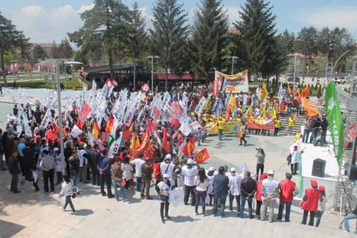 Bir konuşma yapan KESK Dönem Sözcüsü Özkan Üstün, “Bugün 1 Mayıs 2015’te kol kola, omuz omuza sözümüzü ve türkülerimizi söylüyor, 1 Mayıs 1977, 1989 ve 1996’da yitirdiğimiz emekçileri anıyoruz. Tüm mağdurlarla, yoksullarla, dışlananlarla, işsizlerle, işçilerle, kamu emekçileriyle, mimar ve mühendislerle, aydınlarla, sanatçılarla, kadınlarla, gençlerle, emeklilerle, basın emekçileriyle omuz omuzayız. Ve bu bilinçle taleplerimizle, rengarenk bayraklarımızla, türkülerimizle, halaylarımızla tek yüreğiz” dedi.