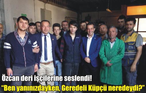 Cumhuriyet Halk Partisi1. ve 2. sıra Milletvekili adayları Tanju Özcan ve Yusuf Renkli, Gerede’de tabakhane işçilerini ziyaret etti. İşçilerin her zaman yanında olmaya devam edeceğini ve işçileri tabaklara ezdirmeyeceğini her fırsatta dile getirdiğini ifade eden Özcan, “ Gerede Cumhuriyet Savcılığı tarafından,milletvekili dokunulmazlığımın kaldırılması ve yargılama yapılabilmesi için Meclise fezleke gönderildi. Suçum neymiş? Size destek olmak, sizin hakkınızı savunmak… Ben sizlerin yanında mücadele ederken, Geredeli Fehmi Küpçü neredeydi? Hangi otelde, kimlerle görüşme yapıyordu? Bunları soruyorum” diye konuştu.