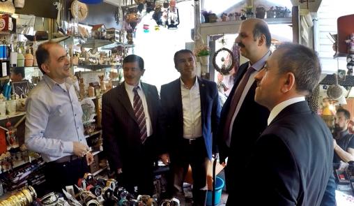 Toplantının ardından Milletvekili Adayları Ali Ercoşkun ve Mehmet Emin Güz, ilçede bulunan esnafları ziyaret etmeye devam etti. Tek tek dükkanları gezen adaylar, esnafların sıkıntılarını dinleyip not tuttu.
