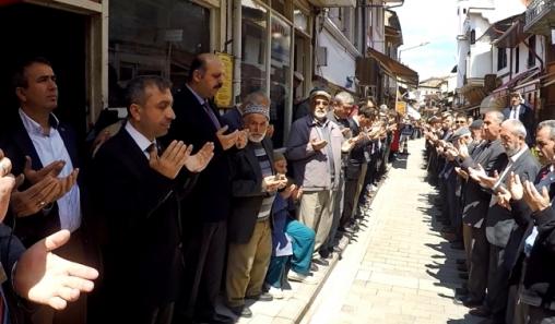 Ak Parti Bolu Milletvekili adayları Ali Ercoşkun ve Mehmet Emin Güz, 700 yıldır her Cuma günü Mudurnu’nun Orta Çarşısında yapılan esnaf duasına katıldı. Dua öncesi esnafları ziyaret eden milletvekili adayları 7 Haziran seçimlerinde destek ve dua istediler. Esnaflar tarafından dağıtılan lokumdan alan Ali Ercoşkun ve Mehmet Emin Güz daha sonra esnaflarla birlikte dua etti.