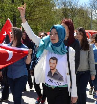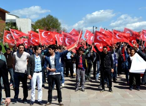 Türki Cumhuriyetlerinin bayraklarının da ön sırada taşındığı yürüyüşte kız öğrenciler dev Türk bayrağı taşıyarak sloganlara eşlik etti. Ülkücüler hep bir ağızdan, “3 Mayıs Türk’ün kutlu günüdür”, “Vatan sana canım feda”, “Bozkurtlar burada, çakallar nerede”, “Hepimiz Kürşad’ız, sarayları basarız”, “Kampüste PKK istemiyoruz” ve “Ne mutlu Türk’üm diyene” şeklinde sloganlar attılar. Tekbirlerin getirildiği yürüyüşte Milliyetçi Hareket Partili Milletvekili adayları ellerinde Türk bayrakları taşıyarak öğrencilere eşlik etti.