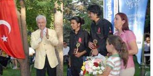 AÜ Rektörü Prof . Dr. Fevzi Sürmeli , dereceye giren ekiplere plaket verdi.
