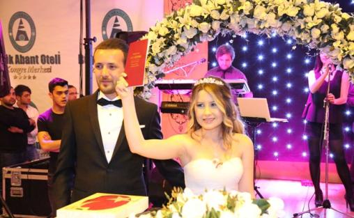 Serdar Makine Sanayi sahibi ve Boluspor eski yöneticisi Metin Kumaş’ın oğlu Ekrem Kumaş ile Bolu’nun tanınmış balıkçı esnaflarından Cengiz Çetintaş’ın kızı Özge Çetintaş’ın düğünleri geçtiğimiz Cumartesi akşamı Büyük Abant Oteli’nde yapıldı. Alaaddin Yılmaz’ın kıydığı nikahla hayatlarını birleştiren genç çiftin nikah şahitliklerini işadamı Emin Semercioğlu, Adnan Tüfekçi ile CHP Milletvekili Tanju Özcan yaptı. Düğüne, Boluspor yöneticiliği yapmış ünlü isimler, işadamları ve çok sayıda davetli katıldı.