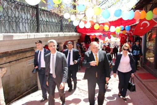 Yukarı Çarşı’da bulunan Taşhan’da birlikte yemek yiyen protokol üyeleri daha sonra Yukarı Çarşı esnafına da ziyaret gerçekleştirdi.