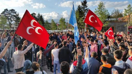 Akşam saat 18.00 sıralarında İzzet Baysal Caddesi’nde ellerinde bayraklarla toplanan yaklaşık 500 kişilik ülkücü grup sloganlar atarak Kent Meydanı’ndan belediye meydanına yürüdü. Grup “Fırat olur akarız, elinizi kırarız”, “Alparslan Türkeş’in askerleriyiz” ve “Bolu burada HDP nerede” sloganları atarak yürürken çok sayıda vatandaş alkışlarla yürüyüşe destek verdi.