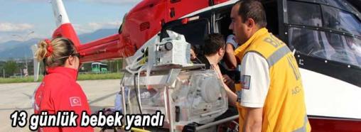 Bolu Sağlık İl Müdürü Mahmut Arık, “Üzücü bir yangın olayı yaşandı. 13 günlük bebeğimizin yüzünde ve ellerinde yanıklar oluştu. İlk müdahale araştırma hastanemizde yapıldı. Bakanlığımızdan hava ambulansı istedik. Hava ekiplerimiz 50 dakika içinde ilimize ulaştı. Ankara Dış Kapı Hastanesi’ne sevk ediyoruz” dedi.