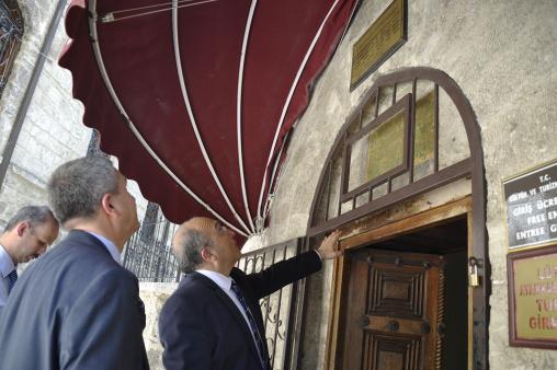 Prof. Dr. Ahmet Haluk Dursun’a İl Kültür Turizm Müdür Yardımcısı Fazıl Karaduman eşlik ederken, ilk ziyaret Akşemseddin Hz. Türbesine gerçekleşti. Göynük Belediye Başkanı Kemal Kazan’dan ilçe ve Akşemseddin Hz. Türbesi hakkında bilgi alan Ahmet Haluk Dursun, ardından tarihi Hükümet Konağı ve Arasta Çarşısını gezdi. Akşemseddin Hz. Türbesi, Zafer Kulesi i ve Tarihi Arasta Çarşısı çevre düzenleme projelerine destek sözü veren Ahmet Haluk Dursun Göynük’ün barındırdığı tarih ve doğal dokusuyla geçmişten günümüze korunarak, gelecek nesillere aktarılmak adına Başkan Kemal Kazan’a gerçekleştirdiği çalışmalardan dolayı teşekkür etti.