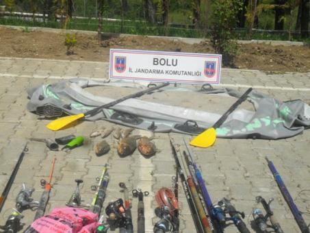 Yasak dönemde Sazan balığı avında kullanılan ve ele geçirilen 1 adet şişme bot, 5 adet Tırıvırı, 11 adet olta ve 10 kg sazan balığına el konuldu.