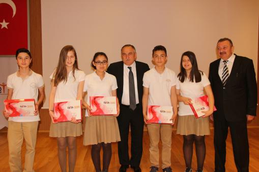 Konuşmaların ardından tablet bilgisayar dağıtım törenine katılan protokol üyeleri tarafından Mustafa Çizmecioğlu Anadolu Lisesi 9'ncu sınıf öğrencilerine tablet bilgisayarlarının dağıtımı yapıldı.