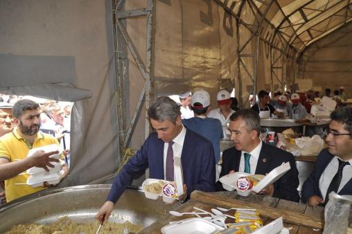 Saat 11.00’da Gazi Süleyman Paşa Caminde gerçekleşen hatim ve dua programı sonrasında protokol üyeleri geleneksel pilav ikramının yapıldığı yemek dağıtım çadırına gelerek okunan dua sonrasında ilk pilav ikramını gerçekleştirildi.