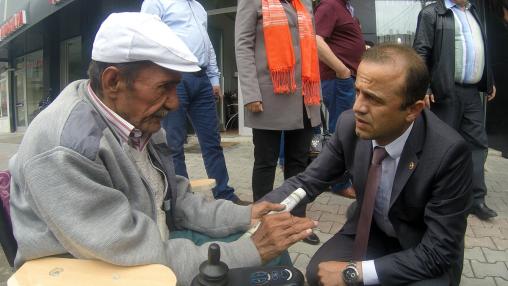 Gölyüzü Mahallesinde esnafları ziyaret eden Fehmi Küpçü, kendisi ile konuşmak isteyen bedensel engelli bir vatandaşın yanına gitti. Seçimlerde oy kullanmak istediğini, ancak bağlı bulunduğu sandığa gidemediği için oy kullanamadığını söyleyen yaşlı adam, “Vekilim 1 oy 1 oydur. Bu yüzden sizden destek bekliyorum. Geçtiğimiz seçim sandığa gidememiştim. Bu kez oy kullanıp Ak Parti'ye destek vermek istiyorum” dedi. Fehmi Küpçü ise, “Sizin adresinizi ve telefon numaranızı alalım, arkadaşlarımız seçim günü sizi sandığa götürsünler. Sizde oyunuzu kullanın” diye cevap verdi.