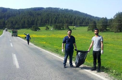 Aladağlarda, Jandarma Karakol Binası ile Doruk Kulübe arasındaki Bolu – Seben karayolunun her iki kenarında yoldan geçenlerce atılan çöpler temizlendi. Çalışmaya Aladağ Orman İşletme Müdürlüğü personeli ile 45 üniversite öğrencisi katıldı. Yapılan bu çalışmayı karayolundan geçerken gören halkımızda durup çalışanlara takdirlerini ve teşekkürlerini sunarak destek verdi.