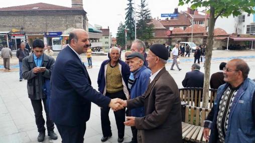 7 Haziran seçimleri öncesi yoğun bir tempoda çalışmalarını sürdüren Ali Ercoşkun, teşkilatlarla birlikte İzzet Baysal caddesinde esnafları ziyaret etti. Ercoşkun destek ve dua isterken, yürüttükleri çalışmalar hakkında da bilgiler verdi. Daha sonra PTT Caddesine geçen Ercoşkun, vatandaşlarla sohbet edip destek istedi. Kalabalık bir partili grubu ile dükkan dükkan gezen Ercoşkun, 7 Haziran seçimlerinin ülke açısından önemine değinerek, “Bu seçimlerde istikrar ve güven ortamının sürmesi hem Bolu hem de ilçeler açısından çok önem taşıyor. 3 milletvekili ile Ankara'ya gitmemiz durumunda hem bakanlarımızın hem de başbakanımızın karşısında Bolu için isteklerimizi daha kolay gerçekleştirebiliriz” dedi.