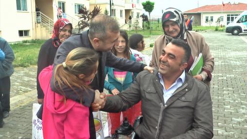 Mehmet Emin Güz ise küçük kıza oyuncak ve şeker hediye etti.