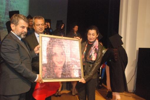 Arkadaşları içerisinde Bigem Çubukçuoğlu’nun resmi bulunan tabloyu mezuniyet töreninde Bigem’in ailesine verdiler.