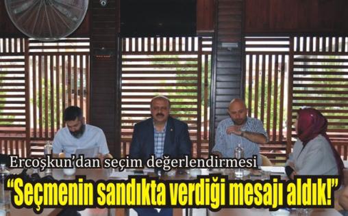 Açıklamalarında, millet iradesi üzerinde başka bir irade tanımadıklarını belirten Ercoşkun, “7 Haziran seçimlerinde çıkan sonucun başımızın üstünde yeri vardır. Sandıkta çıkan tablodan alınması gereken dersler var. Biz verilen mesajı aldık” dedi.