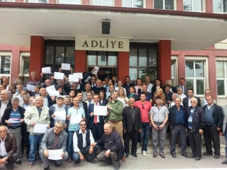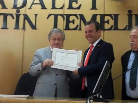 Bolu’da ikinci defa Meclis’e milletvekili olarak giden Tanju Özcan, dün kalabalık bir partili grubuyla Bolu Adliyesi’ne giderek, Ağır Ceza Duruşma Salonunda mazbatasını aldı. Partiden Adliyeye kadar partililerle yürüyerek, tebrikleri kabul eden Tanju Özcan’ı, Adliye’de avukat meslektaşları tebrik etti.