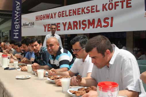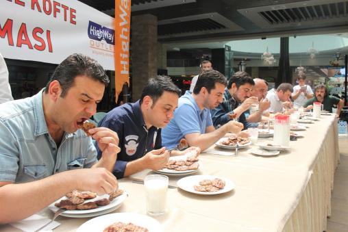Köfte Yeme Yarışması’na katılan 14 kişi arasında en çok köfteyi kimin yiyeceği izlenirken eğlenceli anlar da yaşandı. Yarışmacılara önce kaç köfte yiyeceği soruldu. Tahminlerin alınmasının ardından yarışmacılar önlerine gelen bir tabak dolusu köfteyi 3 dakika içerisinde yemeye çalıştı. Biten tabaklara garsonların yeniden köfte koyması ve yarışmacıların süre bitmeden köfteleri aceleyle yemeleri ise izleyenleri kahkahaya boğdu.