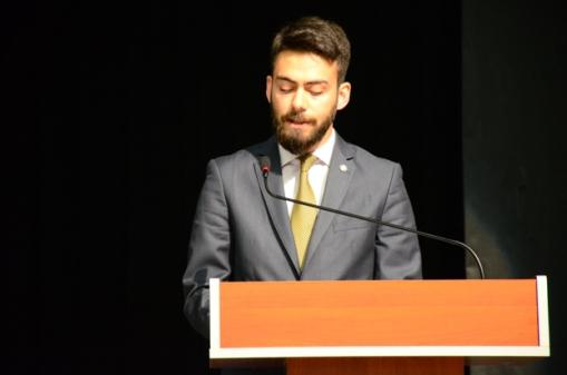 AİBÜ Öğrenci Konseyi Başkanı Saygılı, üniversitede düzenlenen mezuniyet töreninde, Cumhurbaşkanı Recep Tayyip Erdoğan’ın uğruna hapse girdiği, Ziya Gökalp’e ait “Asker Duası” şiirini okudu.