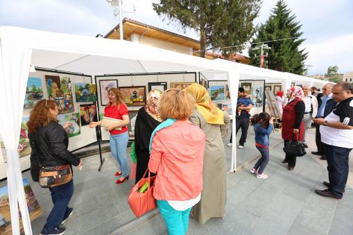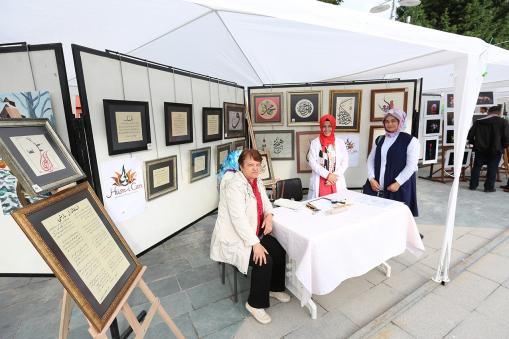 Bir yıl boyunca öğrendiklerini çalışmalarına yansıtan kursiyerler ve kurs hocaları kendilerine ayrılan alanlarda eserleri ile ilgili gelenlere de bilgiler verdi.