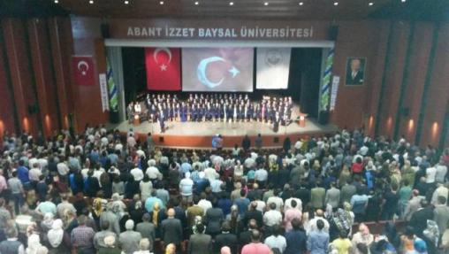 Törene; Vali vekili Necdet Özeroğlu, Vali yardımcısı Abidin Ünsal, Belediye Başkan Yardımcısı İhsan Ağcan, Bolu Sağlık Müdürü Dr. Mahmut Arık'ın yanı sıra İzzet Baysal Vakfı Mütevelli Heyeti Üyesi Uzm. Dr. Mesut Kalaycıoğlu, Kamu Hastaneleri Kurumu Bolu Genel Sekreteri Uzm. Dr. Metin Tahaoğlu, protokol üyeleri, öğretim üyeleri, aileler ve öğrenciler katıldı. Rektörlük makamını temsilen kimsenin törene katılmaması gözlerden kaçmadı.