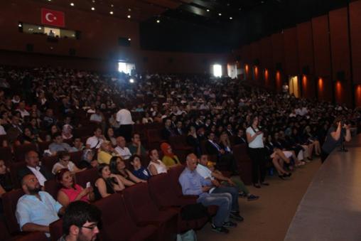Tören genç hekimlerin sahneye davet edilmesi ardından saygı duruşu ve İstiklal Marşı ile başladı. Törenin açılış konuşmasını yapan Tıp Fakültesi Dekanı Prof. Dr. Hasan Koçoğlu, genç hekimlere meslek hayatlarında başarılar dileyerek son günlerde sıklığı artan ‘hekime karşı şiddet’e dikkatleri çekti. Törende 7. Dönem mezunları adına dönem birincisi Dr. Ezgi Akpınar da bir konuşma yaptı.
