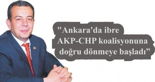 Cumhuriyet Halk Partisi Bolu Milletvekili Tanju Özcan, koalisyon konusunda gündeme dair değerlendirmede bulundu. Salı günü yapılacak oylamalar sonucunda TBMM Başkanı olarak CHP Antalya Milletvekili Deniz Baykal’ın seçileceğini iddia eden Özcan, "Ankara’da ibre AKP-CHP koalisyonuna doğru dönmeye başladı. Ama Sayın Cumhurbaşkanı'nın bu formüle sıcak bakmadığını düşünüyorum" şeklinde açıklamada bulundu.