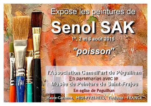 Bolulu ressam Şenol Sak, son dönem ‘balık’ konulu çalışmalarını Toulouse-Fransa’da, l'Association Camell'art de Péguilhan Sanat Derneği’nde sanatseverlerin beğenisine sunacak. Son birkaç yıldır yaz dönemi çalışmalarını sürdürdüğü Güney Fransa’da değişik kültür sanat kurumlarıyla ortak çalışmalar yürüten sergi, atölye ve workshop çalışmaları yapan Sak, sergisini l'Association Camell'art de Péguilhan ve Musée de Peinture de Saint-Frajou adlı kurumların ortak çalışması olarak 1-3 Ağustos 2015 tarihleri arasında açacak. Sak, sergisinde son dönemde yaptığı ‘balık’ konulu 35 adet tual üzeri akrilik boya eserini sergileyecek.