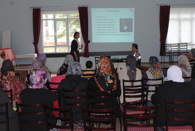 Toplantıda 6284 Sayılı Ailenin Korunmasına Dair Kanun, Aile İçi Şiddetin Topluma Yansımaları, Şiddetin Yol Açtığı Zararlar ve Sonuçları ile Ekonomik Yansımaları konularında vatandaşlara bilgi verilerek hazırlanan broşürler dağıtıldı.