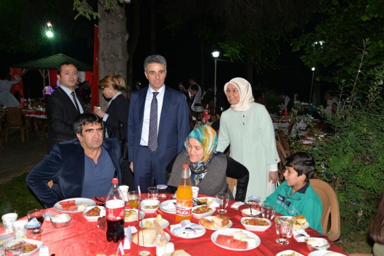 Bolu Valisi Aydın Baruş ise yaptığı konuşmasında, "Sizlerle bu akşam burada bir arada olmaktan son derece mutluluk ve sevinç duyuyoruz. Bu mütevazi soframızı bizlerle paylaşarak bizim gönlümüze ferahlık verdiğiniz için hepinize teşekkür ediyorum. Bu mübarek günde, bu kutlu vakitte bizim bir araya gelmemize vesile olan aziz şehitlerimizi rahmet ve minnetle anıyorum, ruhları şad olsun, Allah mekanlarını cennet etsin diyorum. Geride kalan gazilerimize Allah şifalar versin. Şehit yakınlarımıza Allahsabr-ı cemiller nasip etsin. Biz bu vatan üzerinde bugün alnımız dik, yüreğimiz ferah olarak yaşayabiliyorsak bunu şehitlerimize borçluyuz ve bu borcumuzu ne yaparsak yapalım ödeyemeyiz. Sevindirici olan şu ki, son yıllarda şehit ailelerimize hak ettikleri mevkii kazandırmak için devletimiz tarafından güzel uygulamalar geliştirildi, iyi imkanlar sağlandı. Hem şehitlerimizin yakınlarının işe yerleştirilmesi, hem de gazilerimizin ve yakınlarının işe yerleştirilmesi bakımından sevindirici gelişmeler oldu. Diğer taraftan şehitlerimizin yakınlarının ve gazilerimizin sosyal hayata katılımlarını sağlamak için çok değişik imkanlardan, toplu taşıt imkanlarından istifade etmeleri için düzenlemeler yapıldı. Fakat şunu özellikle belirtmek istiyorum ki, biz ne yaparsak yapalım, onların önünde hizmetçi dahi olsak haklarını hiçbir şekilde ödeyemeyiz. Biz bazen bu sorumluluğumuzun bilincinde olmadan günlük işlerle meşgaleye dalarak sizleri ihmal ediyor olabiliriz. Lütfen kusurumuza bakmayın. Evimizin kapısı da, işimizin kapısı da her daim sizlere açıktır. Mesai arkadaşlarımın tümünden ricam hiç bir şehit ailesini, gazimizi kesinlikle en ufak bir şekilde incitmemeye dikkat etmeleri. Çünkü onlar en değerli varlıklarını, evlatlarını ülkemize feda ederek zaten yapabileceklerinin azamisini yaptılar. Biz ne kadar çalışırsak çalışalım, ne kadar hizmet edersek edelim sizlerin haklarını hiçbir şekilde ödeyemeyiz. Onun için şehit yakınlarımıza, gazilerimize saygısızlık eden bu vatanın evladı olamaz ve bu vatana karşı olan borcunu da hiç bir şekilde ifa etmiş olamaz. Onun için siz değerli şehit yakınlarımız ve gazilerimiz lütfen bu sorumluluğumuzu, bu vecibemizi unuttuğumuz zaman bizlere hatırlatın, yakamıza yapışın. Çünkü üzerimizde çok hakkınız var. Ben tekrar bu mütevazi soframızda bizlere katılarak, bizlerin bir an olsun yüreğini şenlendirdiğiniz için ve yakınlarınızla birlikte hepimize tanışma fırsatı verdiğiniz için çok teşekkür ediyorum. Mübarek Ramazan ayının önümüzdeki günlerinizde hayırlar getirmesini Cenab-ı Hak'tan niyaz ediyorum. Sağlık ve mutluluk içerisinde de Ramazan Bayramı'na ulaşmanızı can-ı gönülden diliyorum. Hepinize sevgi ve saygılarımla hayırlı akşamlar diliyorum" dedi.