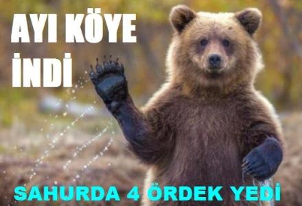 Dörtdivan Yayalar Köyünün sahurda davetsiz misafiri vardı. İki metre boyundaki ayı Yayalar Köyüne inerek, kümes bastı kümes de bulunan ördeklerden dördünü yedi. Fark edilen ayı gürültü üzerine geldiği yoldan dağa kaçtı.