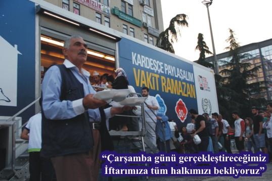 15 Temmuz Çarşamba günü verilecek olan iftar yemeğini değerlendiren BOLU - İHH başkanı Fethi Sarımsakçı; “Ramazan Ayı’nın kendine has atmosferinde, Ramazan sofrasının maneviyatından tat almaktır. Önemli olan manevi ortamda bir araya gelmek, aynı sofrada oturmanın lezzetini yaşamak, beraberlik ve kardeşlik duygularımızı pekiştirmektir. Bolu İnsan Hakları Hizmet Derneği olarak böyle anlamlı bir etkinliği gerçekleştirdiğimiz, bu atmosferde gönüllülerimiz ve vatandaşlarımızla bir arada olmak, bizim için büyük bir gurur ve mutluluk kaynağı olacaktır. Çarşamba günü gerçekleştireceğimiz İftarımıza tüm halkımızı bekliyoruz” dedi.