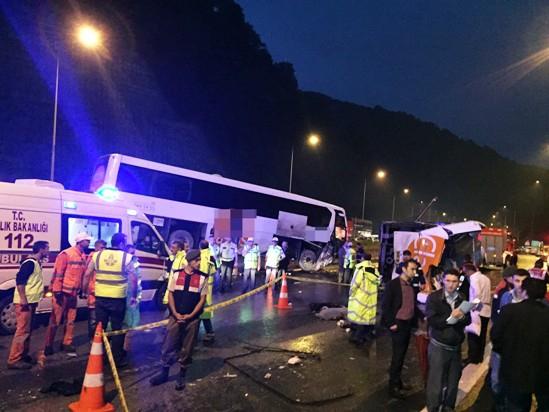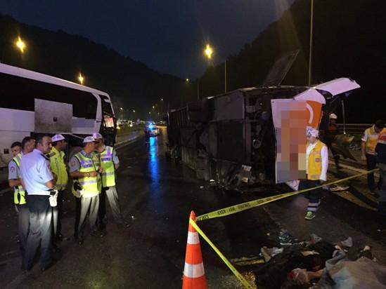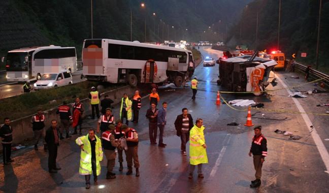 Ankara’dan İstanbul istikametine gitmekte olan Tuncay Sütçü’nün kullandığı 68 DK 464 plakalı yolcu otobüsü, yolun kaygan olması nedeniyle kontrolden çıkarak devrildi. Kazadan 3 dakika sonra aynı istikamete giden Yılmaz A.’nın kullandığı 34 ZZ 5974 plakalı yolcu otobüsü ise kaza yapan otobüse çarpmamaya çalışırken bariyerlere çarparak refüje çıktı. Yolcuların ifadesine göre, sürücü kaza yerine girmemek için otobüsü refüje çıkarttı.