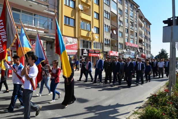 Gençlik Merkezi Halk Oyunları ekibinin gösterisinin ardından Atatürk’e saygı yürüyüşüne geçildi. Uğur Mumcu Parkı’ndan başlayan ve Belediye Bandosu ile Bayrak ve flamaların da yer aldığı “Atatürk’e Saygı Yürüyüşü” İzzet Baysal Caddesi’nden geçilerek Anıt Park’ta son buldu.