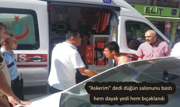 Edinilen bilgiye göre, kendisinin askeri personel olduğunu ileri süren bir şahıs, İsmet Paşa Caddesi üzerinde bulunan bir düğün salonuna girerek davetlilere sataşmaya başladı. Bunun üzerine düğüne gelen bazı vatandaşlar tarafından salon dışına çıkartılan ve alkollü olduğu öğrenilen şahıs, burada da etraftaki insanlara sataşmaya başlayınca çevredeki vatandaşlar tarafından darp edilmeye başladı.