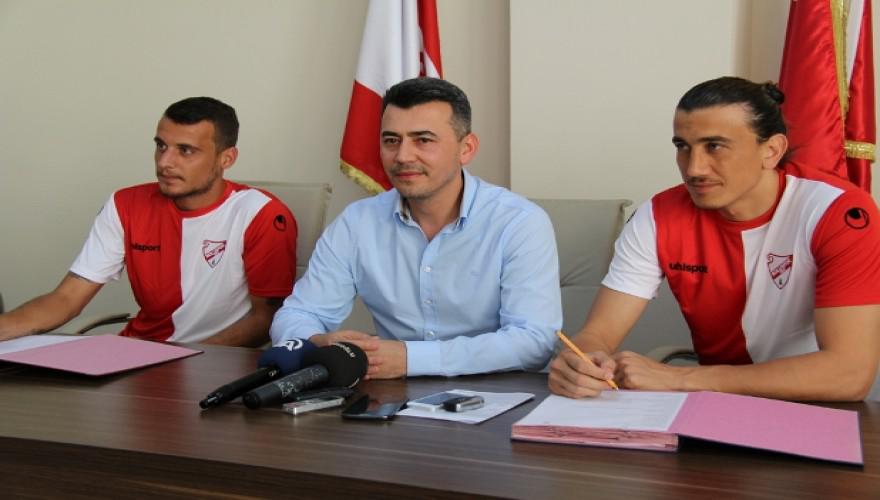 Samsunspor’dan Soner Şahin ve Bucaspor’dan Emrecan Afacanoğlu ile geçtiğimiz günlerde anlaşan kırmızı beyazlılar, 2 oyuncuya resmi imzayı attırdı. Kulüp tesislerinde düzenlenen imza töreninde konuşan Kulüp Başkanı Savaş Abak; “Bu sene bizim amacımız, defans, kaleci ve hatta ikili ön libero ile 7 kişiyi çok sağlam tutmak istiyoruz. PTT 1’inci lig kalecisi iyi olan, orta sahası iyi olan, atanı iyi olan belli noktalara geliyor. Soner yaklaşık 2 senedir çok iyi maçlar oynuyor” dedi.