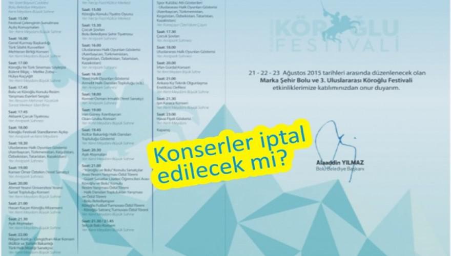 Aylar öncesinden hazırlanan ve şu anda davetiye dağıtımı devam eden Festival programında yer alan halka açık konserlerin ise akıbeti belli değil. Uluslararası Aşçılık Festivali programında yer alan konserler nedeniyle Mengen Belediyesi ağır eleştiriler almış, Mengen Kaymakamlığı’nın müdahalesi sonrası festival komitesi festivalin ileri bir tarihe ertelendiğini açıklamıştı. Bolu Belediyesi tarafından organizasyonu aylar öncesinden yapılan Köroğlu Festivali’nin, festivale yurt dışından gelecek katılımcılar nedeniyle ileri bir tarihe ertelenmesi beklenmezken, festival kapsamında ki açık hava konserlerinin iptal edilmesi bekleniyor.