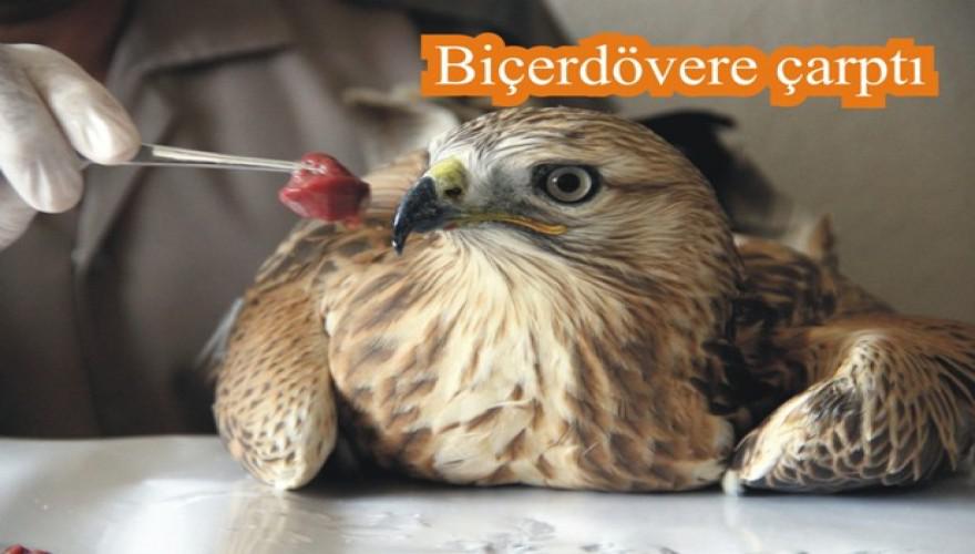 Dörtdivan ilçesi Sorkun köyünde tarlada çalışan biçerdövere çarpan kızıl şahin yaralandı. Köylüler tarafından Doğa Koruma Milli Parklar Bolu Şube Müdürlüğüne getirilen şahinin kanadının kırıldığı belirlendi.