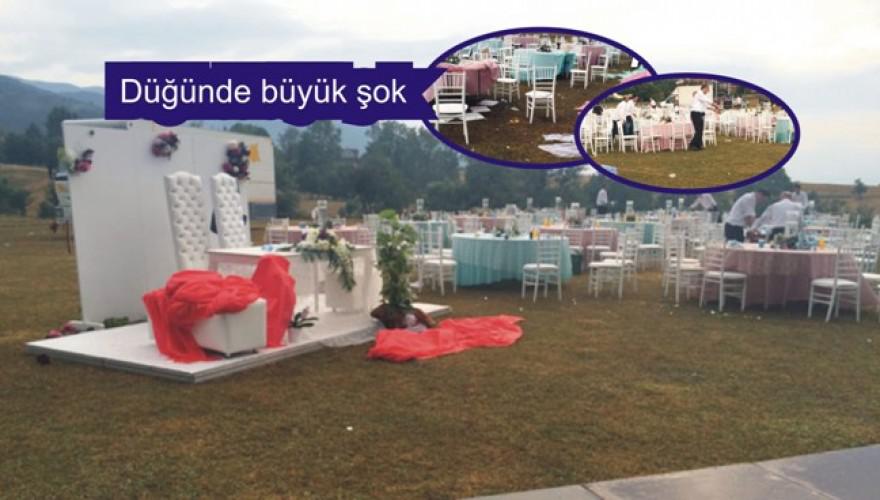 Yağmur nedeniyle başlamadan biten düğün evlenecek çifti bir hayli üzerken düğün için hemen salon tutuldu ve düğün salonda devam etti.