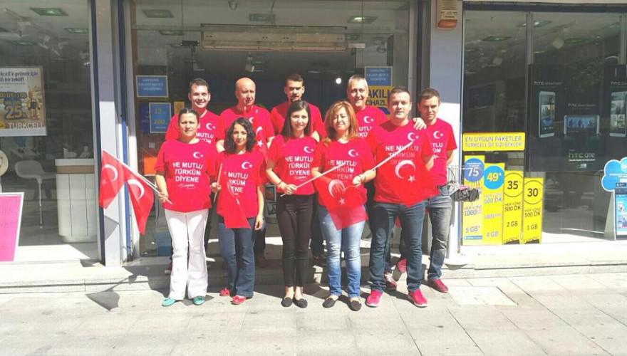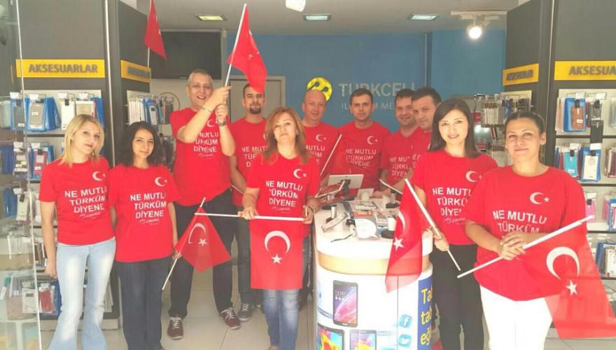 30 Ağustos Zafer Bayramı’nda Bolu esnafları da büyük coşku yaşadı. 30 Ağustos Zafer Bayramı nedeniyle İzzet Baysal Caddesi’nde yapılan askeri geçiş törenine Turkcell Öztürkler çalışanları da ellerinde bayraklarla destek verdi. Ne Mutlu Türküm yazan tişörtleri ve Türk bayraklarıyla Zafer Bayramını kutlayan çalışanlar, çocuklara balon ve bayrak hediye ettiler.